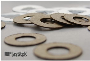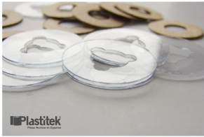 Elaboramos arandelas en presspham y PVC, que se utilizan en los mecanismos de cinturones de seguridad, entre otras aplicaciones.